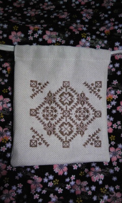 刺しは木曜日に終わって、日曜日にミシンで巾着に仕上げました。
