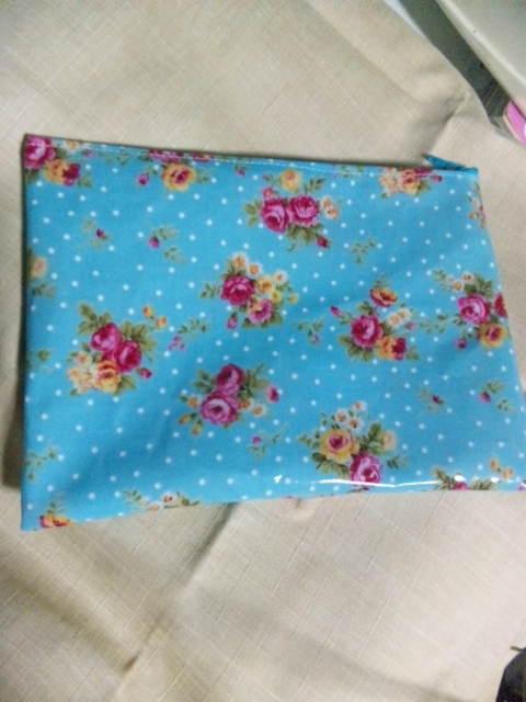 ぺたんこポーチは、ラミネート生地を使いました。中布を付けてないので、あっという間に出来上がり。