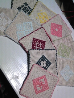 この図案もフェリシモのキットにあったもの。本当はミニバッグを作るキットでしたが、途中で断念。途中まで刺した糸を全て解き、昨日紹介したコースターに生まれ変わりましたf^_^;
