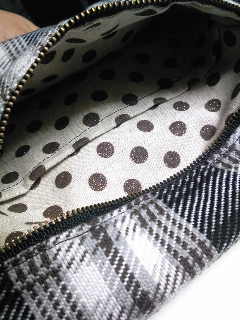 表地のチェック布は、実は以前作ってプレゼントした、もこもこマフラーの残り布。密かにお揃いになってしまいましたが、ご本人の目に留まることはほぼ無いだろうとふんでおります。