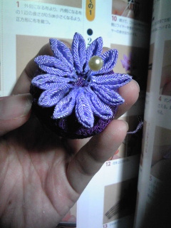 昨日むりくり貼付けたつまみ細工は、すっかりボンドも乾き接着されましたー。