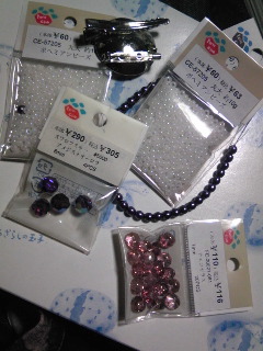 なのでごく普通のビーズと、チェコガラスのもの、4粒で300円(高い…;)のスワロフスキーを買いました。