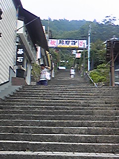 湿気と暑さで汗だくになりながら延々続く階段をのぼります。